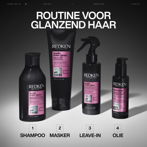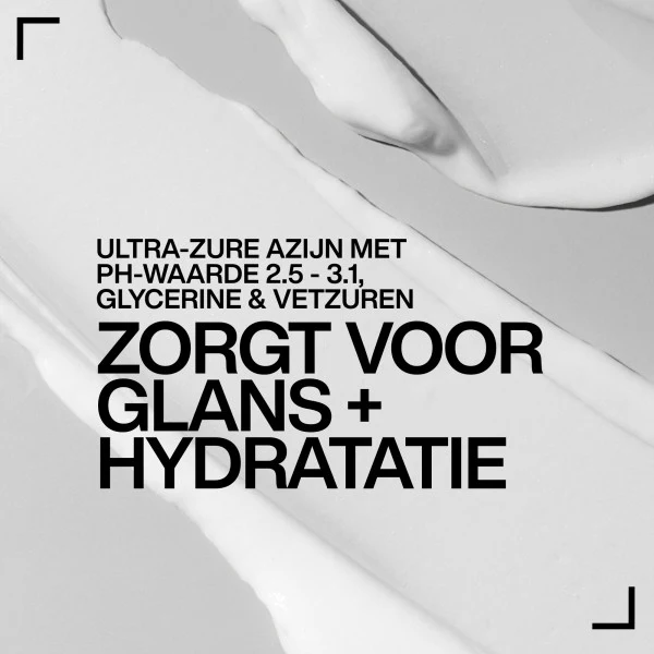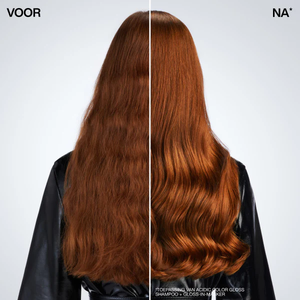 De geavanceerde formule met een zure pH van 2,5 – 3,1 bevat pH-technologie, het Acidic Shine Complex, glycerine en vetzuren. Samen sluiten ze de haarschubben, maken de haarvezels glad en zorgen voor optimale lichtreflectie, waardoor je haar een langdurige en intense glans krijgt. Daarnaast helpt de zure pH de natuurlijke balans van het haar te behouden en de kleurintensiteit langer te beschermen. De lichte, snel-absorberende textuur maakt het haar makkelijk doorkambaar zonder het te verzwaren, terwijl de fruitige, bloemige en warme geur een luxueuze beleving geeft bij elk gebruik.