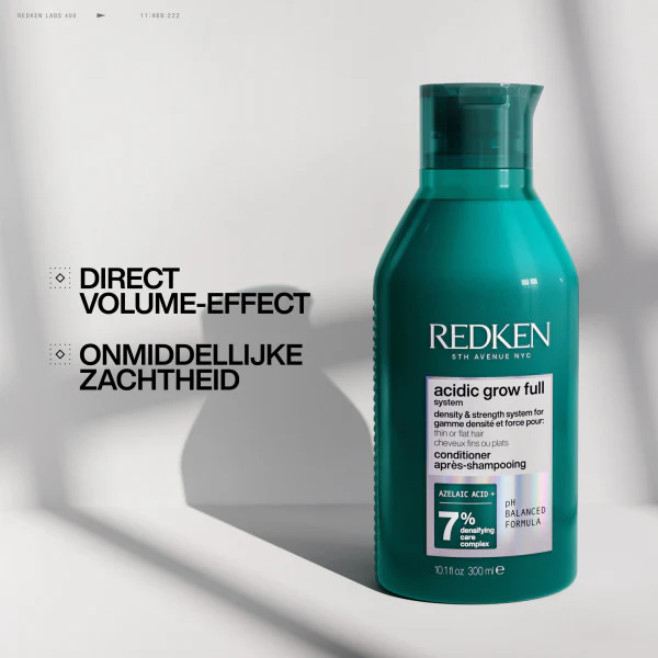 • Breng de conditioner aan op schoon, nat haar na het wassen met Acidic Grow Full System Shampoo.